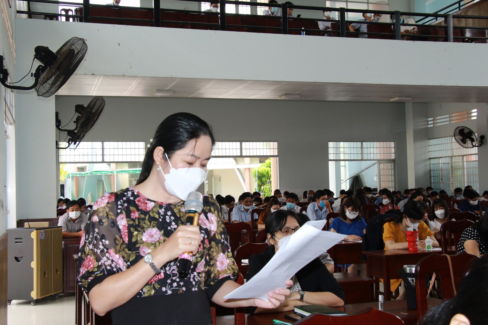 Ông Lê Trung Kiên - Phó Bí thư Đảng ủy, Phó Hiệu trưởng nhà trường báo cáo tổng kết công tác xây dựng Đảng năm 2021 và chương trình công tác năm 2022
