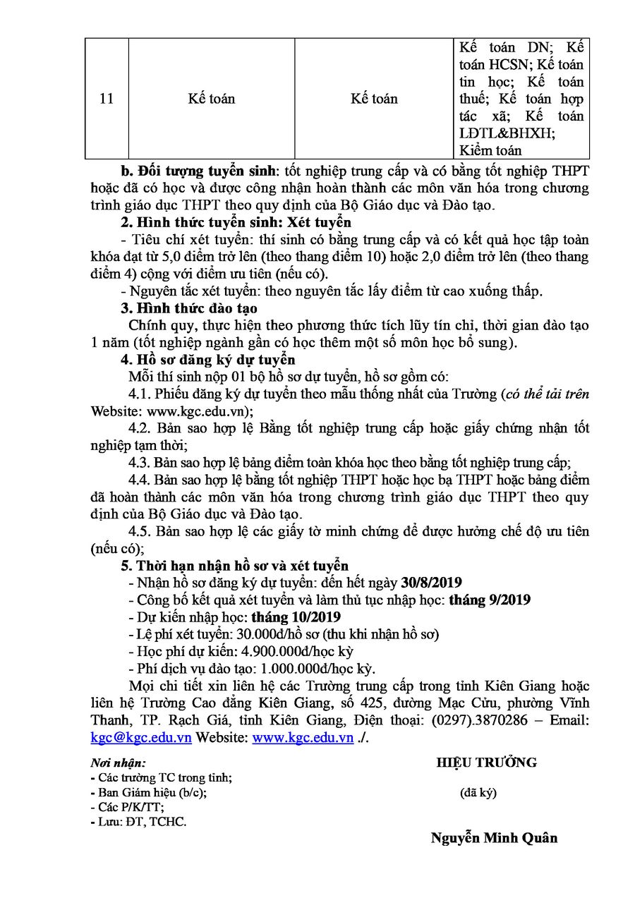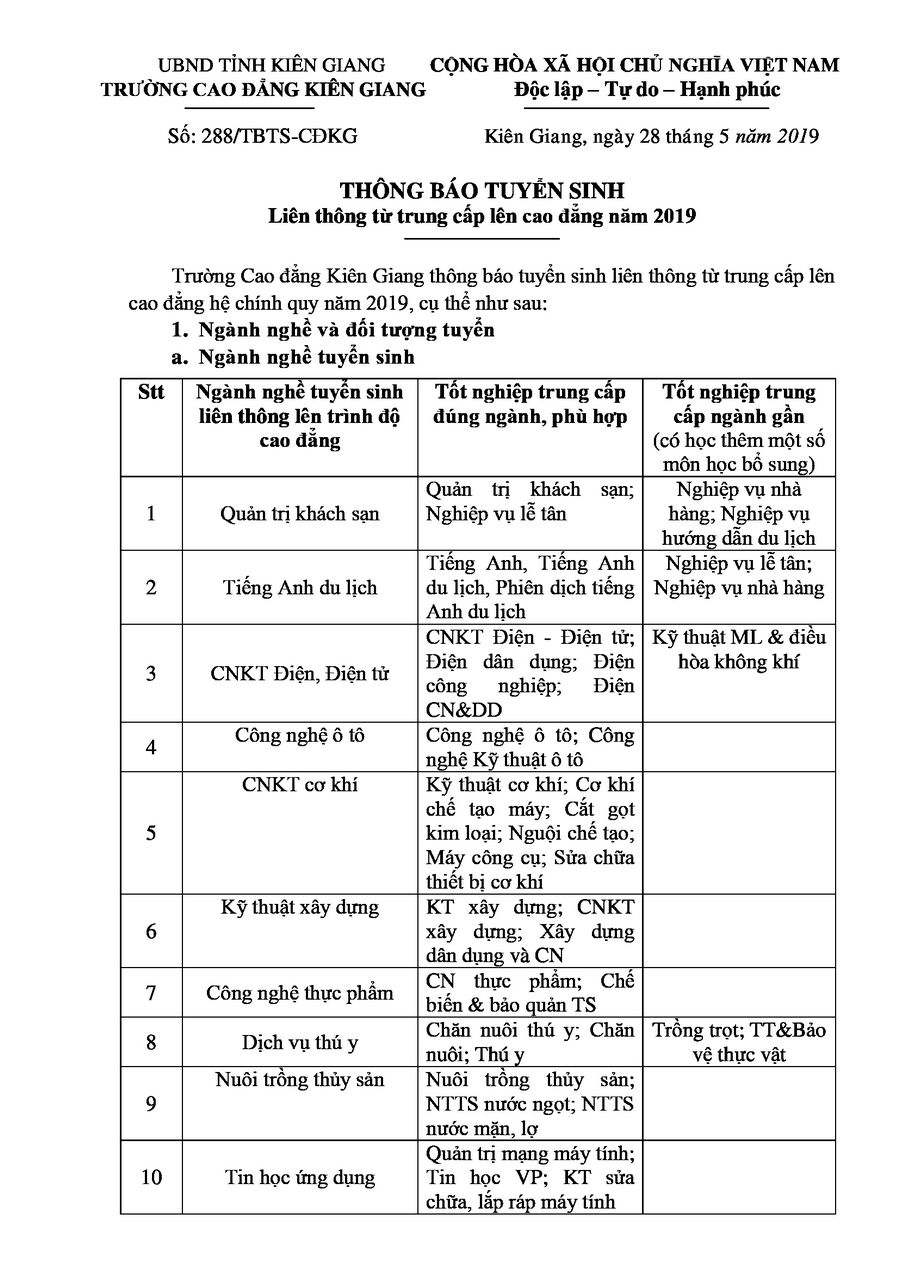 THÔNG BÁO TUYỂN SINH LIÊN THÔNG TỪ TRUNG CẤP LÊN CAO ĐẲNG NĂM 2019