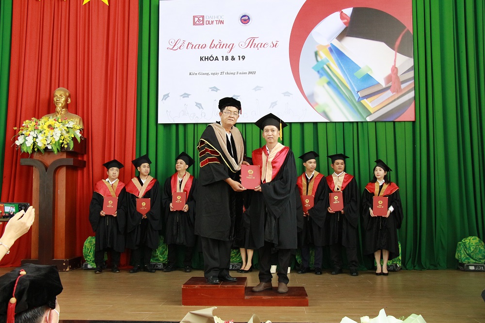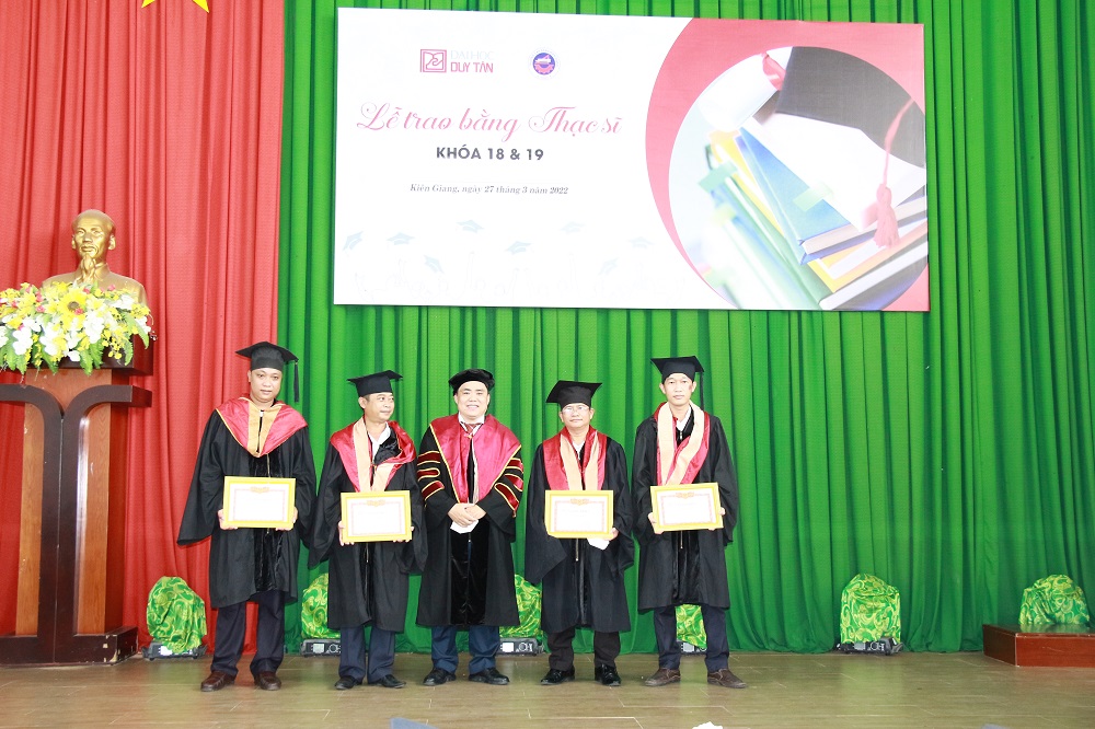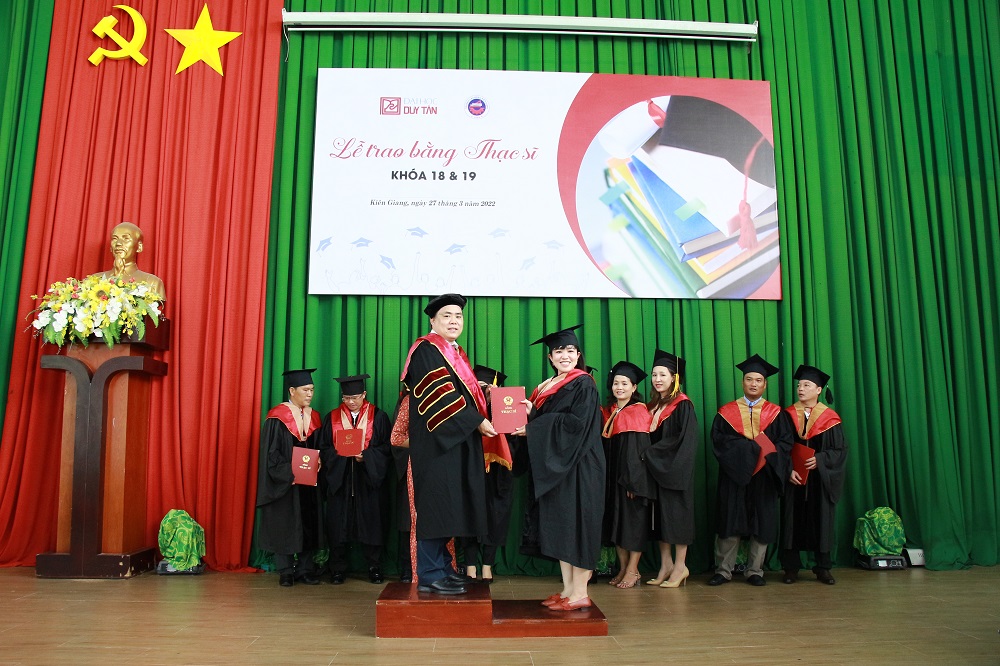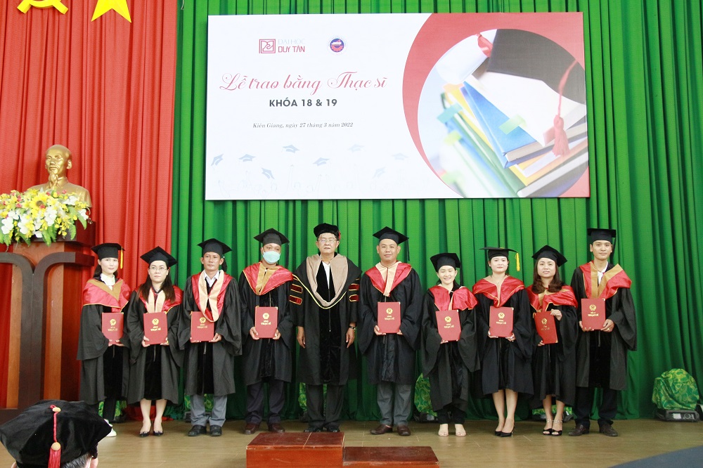 Ngày 27/3/2022 là ngày vô cùng ý nghĩa đối với 64 tân Thạc sĩ của Trường Đại học Duy Tân, ngày mang đến nhiều cung bậc cảm xúc, chính thức đánh dấu cột mốc mới trên hành trình chinh phục tri thức được ghi dấu lại trong Lễ Trao bằng Thạc sĩ khoá 18 & 19, đây là chương trình đào tạo được phối hợp giữa trường Đại học Duy Tân và trường Cao đẳng Kiên Giang.