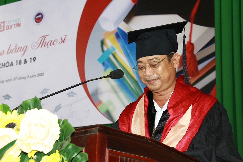 Anh Quách Tấn Tâm đại diện cho 64 tân Thạc sĩ phát biểu cảm nghĩ nhân ngày tốt nghiệp