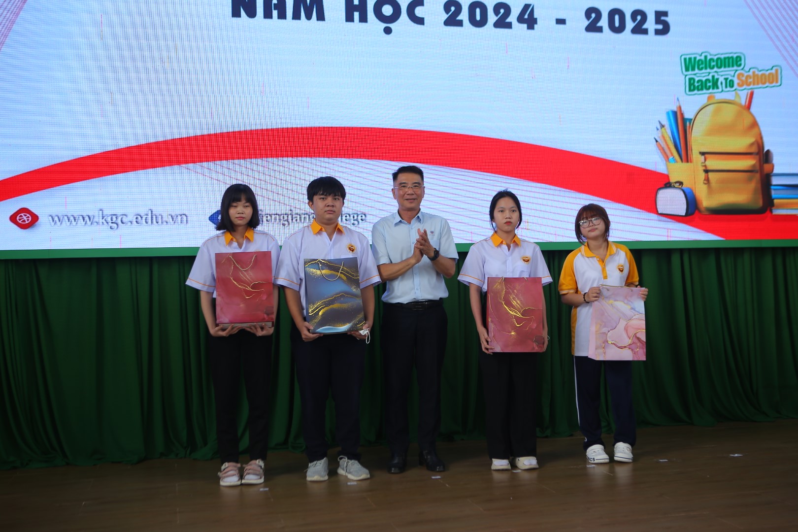Tại buổi lễ chào đón, TS. Nguyễn Minh Quân – Hiệu trưởng nhà trường đã chia sẻ những cảm xúc chân thành khi đón các thành viên mới về với đại gia đình KGC. Thầy mong rằng các bạn sẽ sớm làm quen với môi trường học tập mới, tích cực học hỏi, rèn luyện và tham gia các hoạt động để ngày càng hoàn thiện bản thân. Đại diện cho các tân sinh viên, bạn Danh Dị Khang - Ngành Kỹ thuật Máy lạnh và điều hoà không khí và bạn Trần Thị Mỹ Tiên - Ngành Quản trị khách sạn cũng bày tỏ sự vui mừng khi trở thành sinh viên mới của ngành mình yêu thích, đồng thời hứa sẽ nỗ lực hết mình suốt quá trình hơn 2 năm học tại đây.