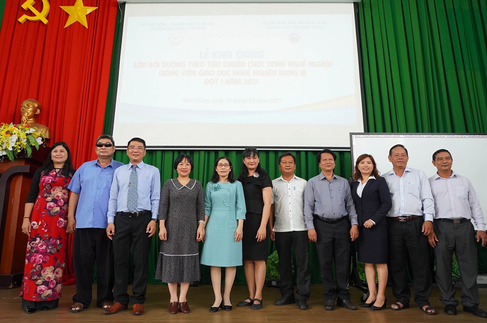 Với mục đích nâng cao năng lực chuyên môn, nghiệp vụ và đạo đức nghề nghiệp của viên chức trong nhà trường, đồng thời thực hiện tốt quy định về tiêu chuẩn chức danh nghề nghiệp viên chức chuyên ngành giáo dục nghề nghiệp do Bộ Lao động - Thương binh và Xã hội ban hành, ngày 10/4/2021, trường Cao đẳng Kiên Giang long trọng tổ chức Lễ Khai giảng lớp BỒI DƯỠNG CHỨC DANH GIẢNG VIÊN GIÁO DỤC NGHỀ NGHIỆP HẠNG 3 – ĐỢT 1/2021 (từ ngày 10/4 - 30/5/2021) dành cho giảng viên của trường, trường Cao đẳng Y tế và trường Cao đẳng Nghề Kiên Giang. Lớp học được bắt đầu ngay sau khi diễn ra Lễ Khai giảng tại Hội trường - cơ sở 425 Mạc Cửu. Sau khi bế giảng lớp học, trường Cao đẳng Kiên Giang sẽ tiếp tục mở lớp bồi dưỡng Chức danh Giảng viên Giáo dục nghề nghiệp hạng 3 - Đợt 2/2021 (từ ngày 19/6 - 29/8/2021).