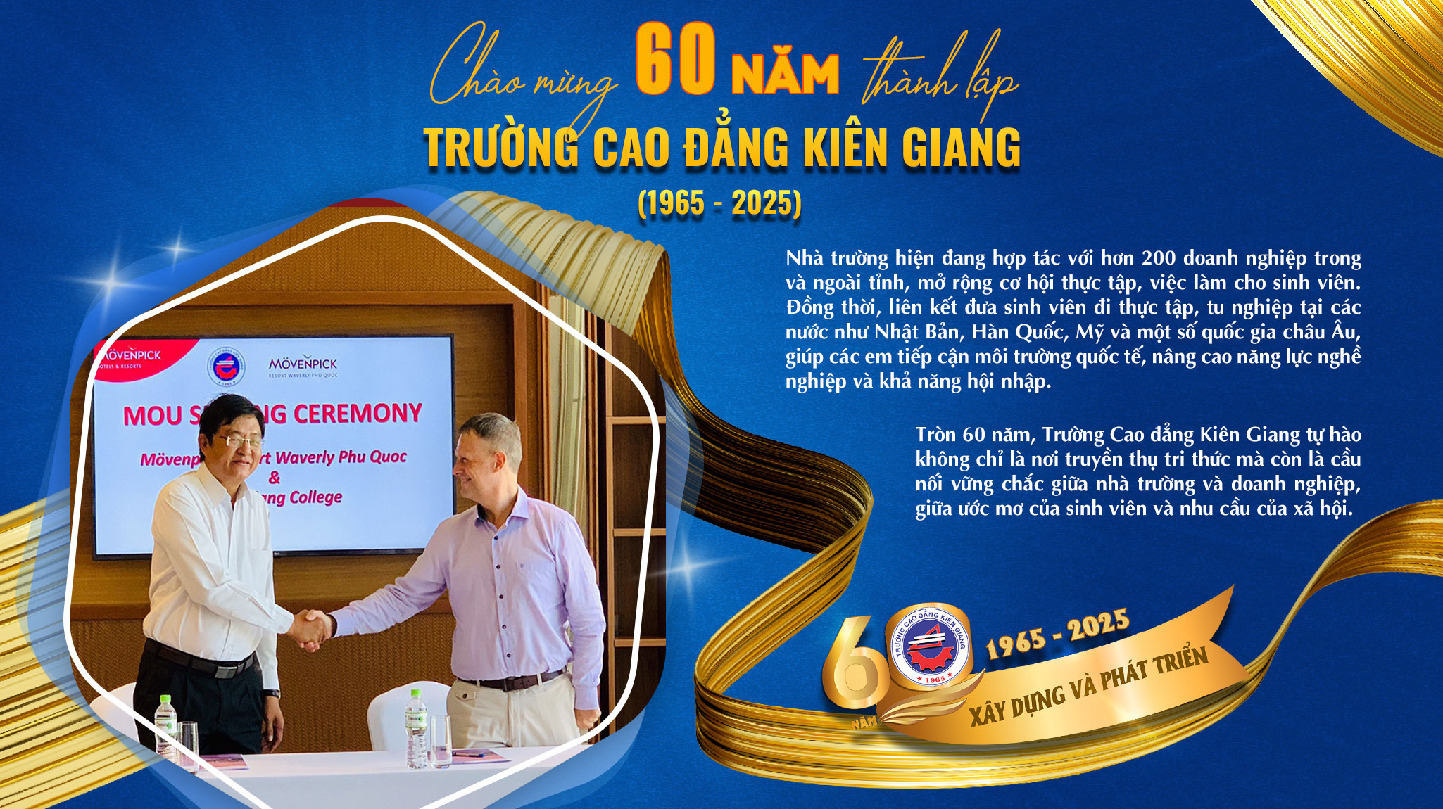 Sáu mươi năm hình thành và phát triển, Trường Cao đẳng Kiên Giang đã viết nên hành trình đầy tự hào của một ngôi trường luôn đặt người học làm trung tâm, gắn kết chặt chẽ giữa đào tạo, thực tiễn, doanh nghiệp và xã hội. Từ những ngày đầu còn khó khăn, đến nay, ngôi trường đã trở thành một trong những điểm đến tin cậy của người học và doanh nghiệp, là nơi ươm mầm cho những ước mơ và là cơ sở đào tạo nguồn nhân lực chất lượng cao đóng góp vào sự phát triển của khu vực.