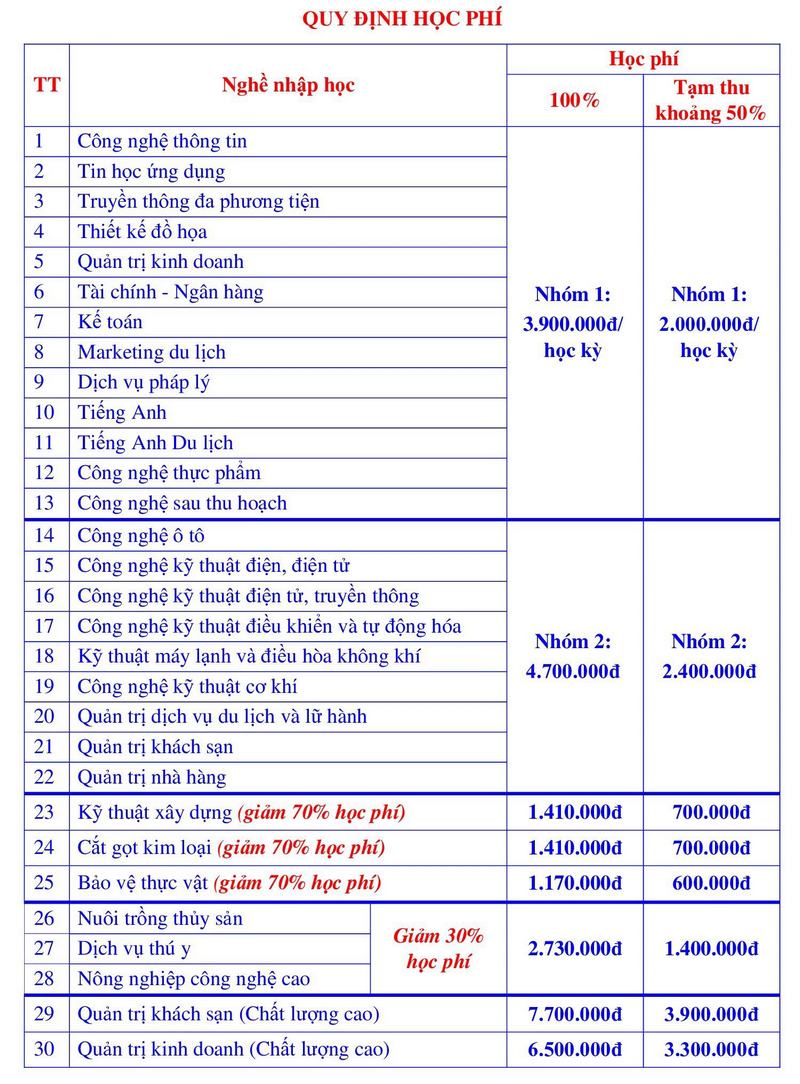 - Ảnh chụp Biên lai đóng học phí tại ngân hàng hoặc thông tin giao dịch qua cổng internet banking (Thí sinh có thể đóng ít nhất 50% học phí, về học phí cụ thể của mỗi ngành nghề và nội dung chuyển khoản mời các bạn xem tại đây: