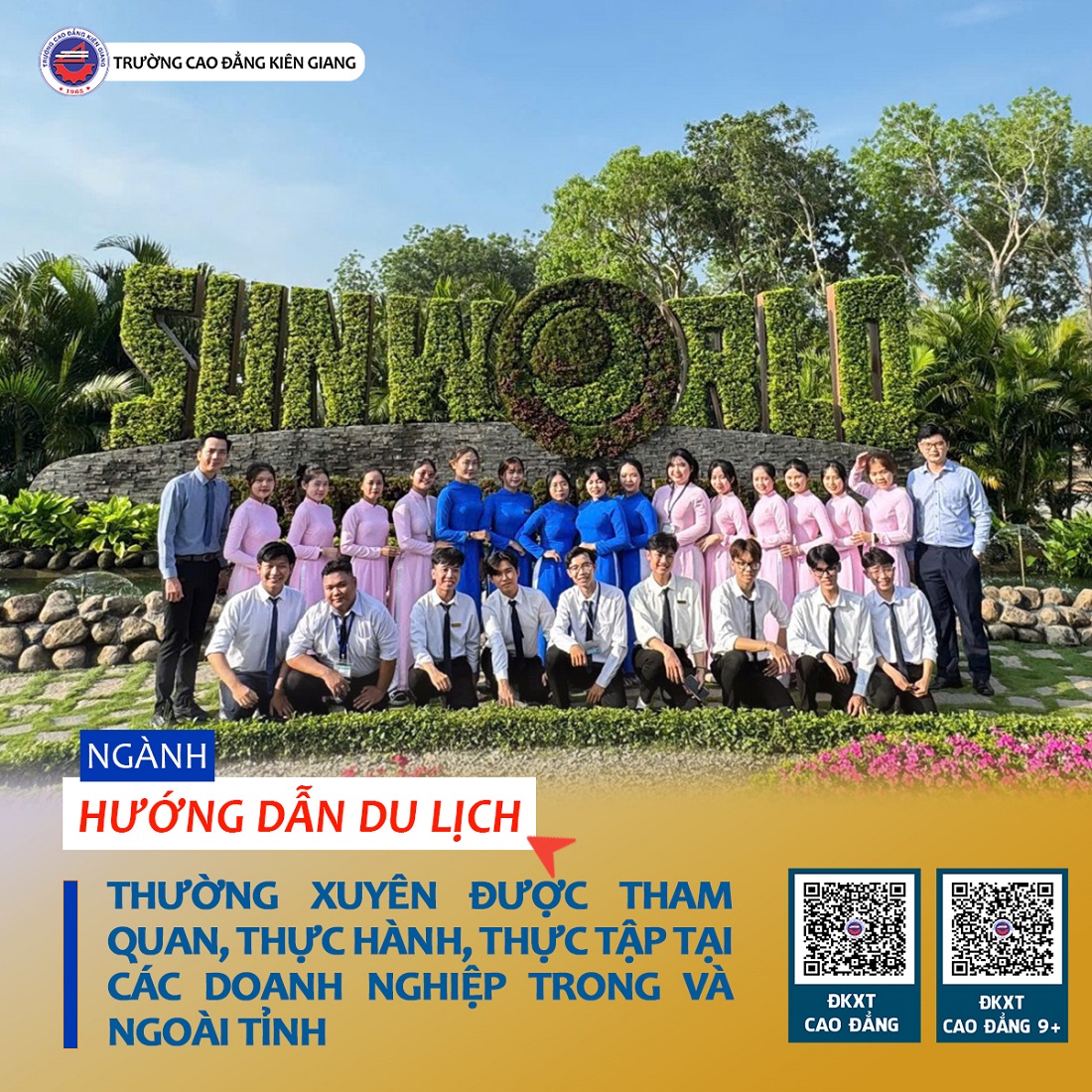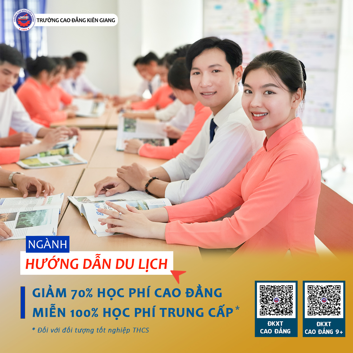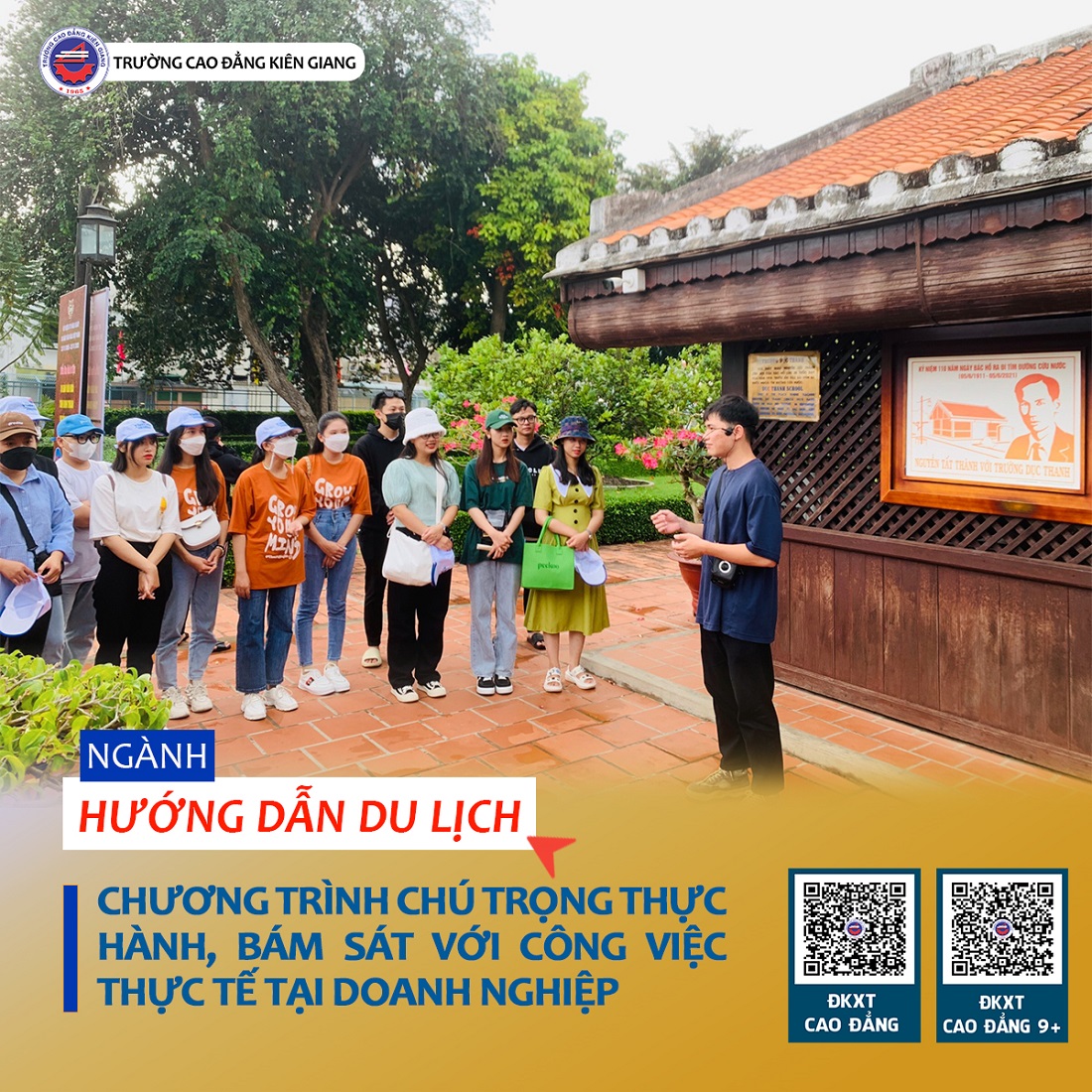 Nếu bạn yêu thích khám phá, muốn biến đam mê “xê dịch” thành công việc ổn định lâu dài thì đừng bỏ qua ngành Hướng dẫn du lịch. Đây chính là cánh cửa đưa bạn đến với thế giới tràn ngập trải nghiệm, nơi mỗi hành trình là một bài học, mỗi điểm đến là một cơ hội để trưởng thành. Trong bối cảnh du lịch đang hồi sinh mạnh mẽ và trở thành ngành kinh tế mũi nhọn, nghề hướng dẫn viên ngày càng khẳng định vị thế với thu nhập hấp dẫn, môi trường làm việc năng động và đầy màu sắc. Quan trọng hơn hết, tại Trường Cao đẳng Kiên Giang, ngành này đang được giảm học phí đến 70%, tạo điều kiện tối đa cho các bạn trẻ theo đuổi ước mơ của mình.