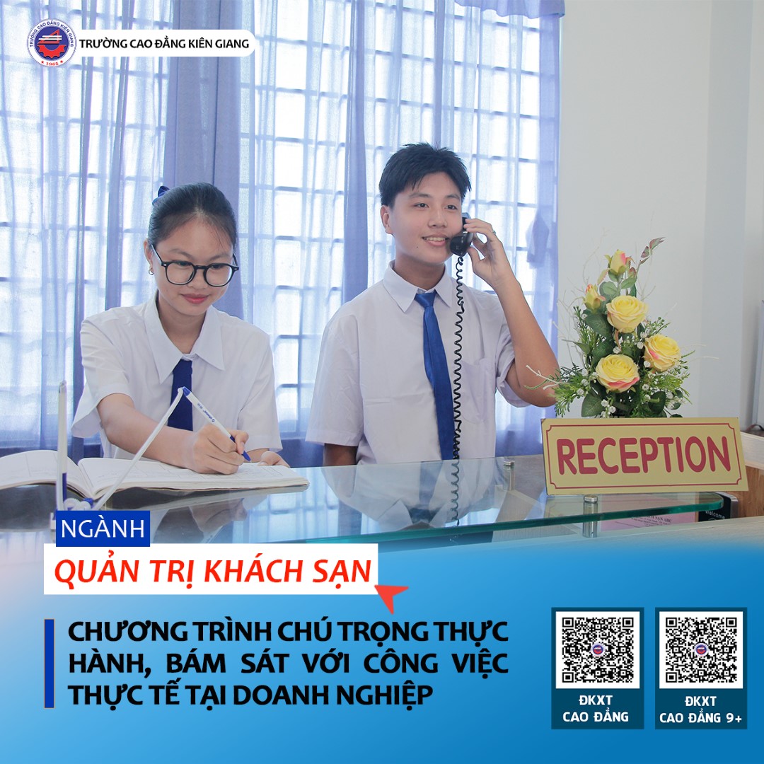 Chương trình học của ngành trang bị cho sinh viên kiến thức, kỹ năng chuyên sâu về các nghiệp vụ chính của khách sạn như: Lễ tân, nhà hàng, buồng, nấu ăn, Bartender, tổ chức sự kiện, quản trị tiệc… Sinh viên được học tại các phòng thực hành của khoa với các trang thiết bị hiện đại, có cơ hội thực tập hưởng lương và làm việc tại các khách sạn, resort 4-5 sao trong và ngoài tỉnh. Sau khi tốt nghiệp, các bạn trẻ sẽ đảm nhận vị trí: Nhân viên, giám sát bộ phận lễ tân, buồng, nhà hàng, quản lý khách sạn, bộ phận chăm sóc khách hàng hoặc tiếp tục theo học ở các bậc học cao hơn. Cơ hội du học nghề miễn học phí và được trợ cấp hàng tháng lên đến 2000 Euro tại CHLB Đức.