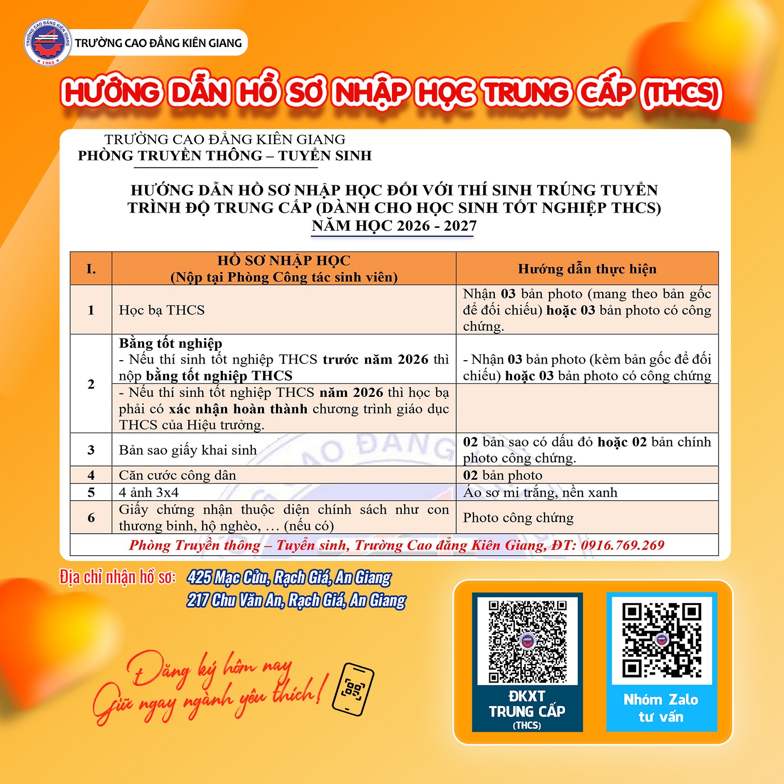 HƯỚNG ĐI ƯU VIỆT SAU THCS: CHƯƠNG TRÌNH TRUNG CẤP TẠI TRƯỜNG CAO ĐẲNG KIÊN GIANG