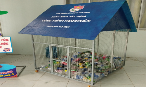 Nhà chứa rác thải nhựa do sinh viên tự làm