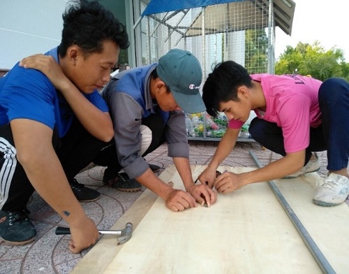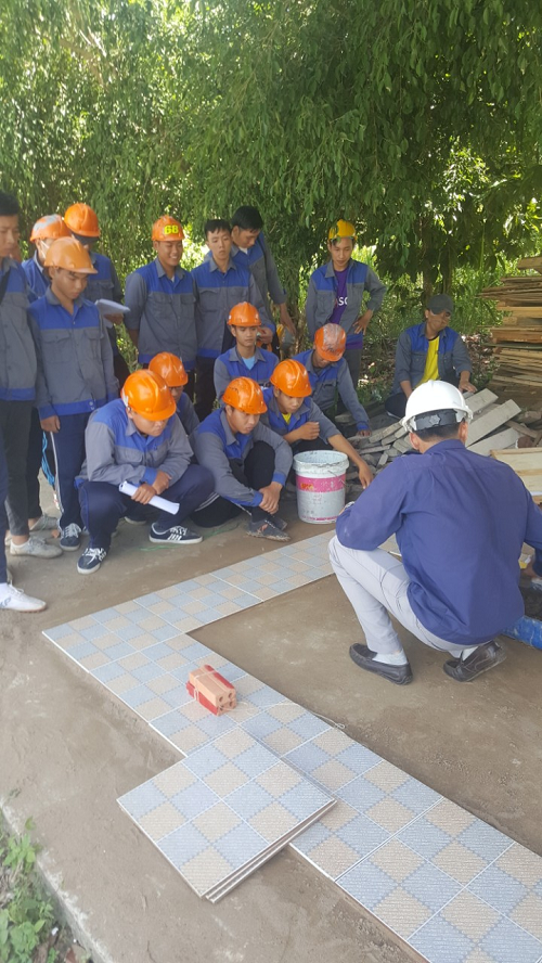 Áp dụng các mô đun Xây gạch, Trát láng, Hoàn thiện bề mặt, Cấp thoát nước để xây dựng và hoàn thành hơn 7 băng ghế ngồi cho sinh viên, lát hơn 200 m2 gạch vỉa hè tạo lối đi xung quanh khuôn viên xưởng, lắp đặt hệ thống rửa tay tại nhà xưởng giúp sinh viên có môi trường học tập thoải mái nhất có thể.