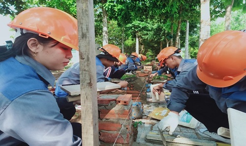 Sinh viên thực hành môn xây gạch