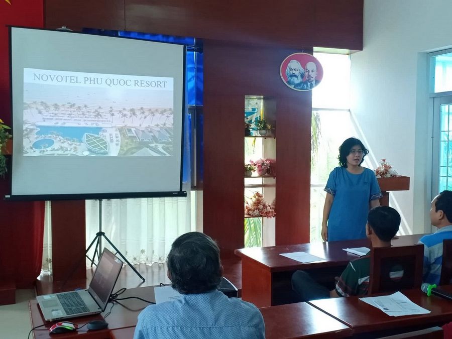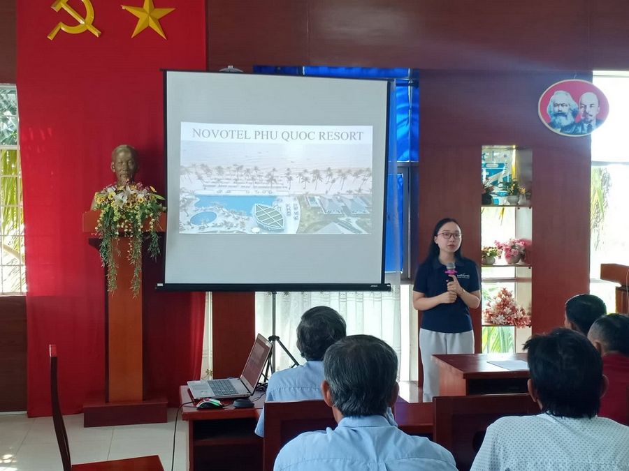 Đại diện đơn vị thực tập Novotel Phu Quoc Resort giới thiệu doanh nghiệp tại buổi họp