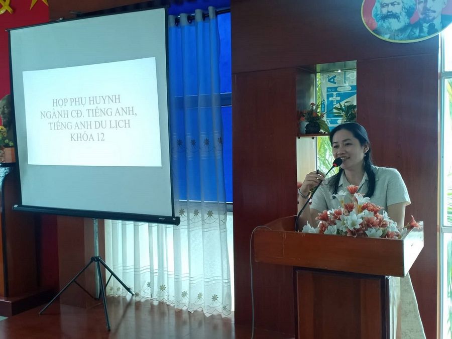 Cô Lương Thị Tố Quyên - Phó Trưởng khoa Ngoại ngữ phổ biến thông tin trong buổi họp